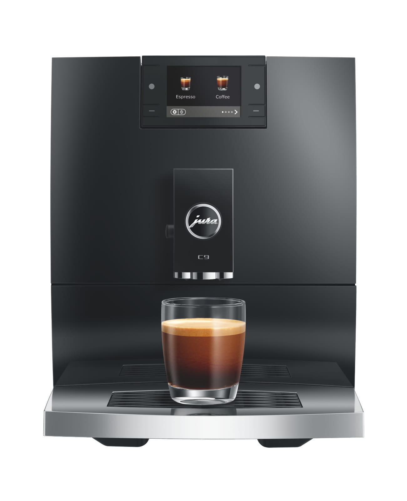 Kompaktowy model ekspresu C9 wyposażony w profesjonalny młynek P.A.G. oraz pełnowymiarową jednostkę zaparzającą pozwala przygotować 17 specjałów kawowych. Można zatem cieszyć się wyjątkowym smakiem zarówno klasycznych jak i mlecznych specjałów. Łączy w sobie maksymalną wydajność oraz elementy charakterystyczne dla segmentu premium. Zbiornik na wodę oraz chromowana tacka na filiżanki charakteryzują się falistą strukturą a wklęsło-wypukły front z kolorowym 2,8 calowym wyświetlaczem dopełniają elegancji i klasy ekspresów marki Jura.