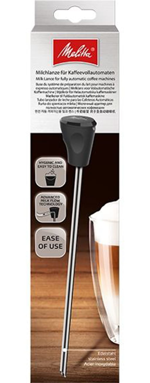 Lanca do mleka Melitta® jest innowacyjnym i niezawodnym rozwiązaniem, które pomoże Ci przygotować spienione mleko o idealnej temperaturze. Obsługa nie mogła być prostsza: Włóż lancę do kartonu z mlekiem, połącz rurkę spieniacza z lancą - teraz możesz spieniać mleko! Niezwykle praktyczne rozwiązanie – możesz używać mleka jak zawsze i przyrządzić na przykład płatki śniadaniowe, nawet jeżeli w kartonie lub pojemniku pozostała lanca do mleka, ponieważ dzięki zastosowaniu najwyższej jakości stali nierdzewnej w żaden sposób nie wpływa ona na smak mleka.