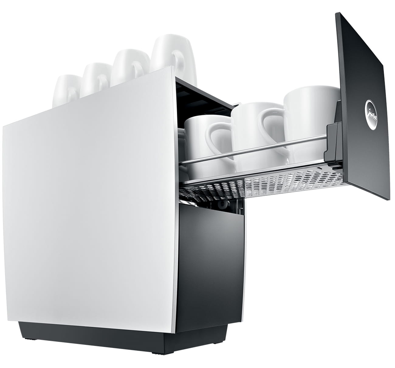 Dopiero w odpowiednio ogrzanych filiżankach cudowne doznania smakowe mogą się w pełni rozwinąć. Elegancki podgrzewacz do filiżanek JURA jest idealnym dopełnieniem każdego ekspresu do kawy. Dwa elementy grzejne utrzymują filiżanki w stałej temperaturze około 55 °C - idealnej do przygotowania zarówno ognistego espresso, jak i pokrytego lekką jak piórko pianką mleczną, bajkowego cappuccino.