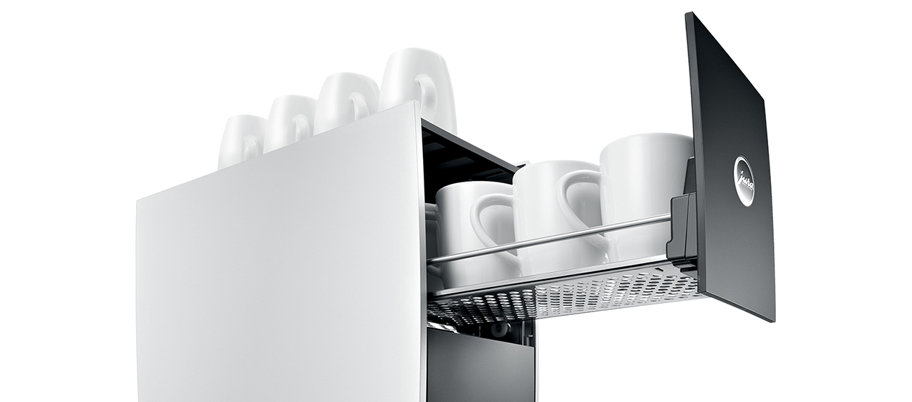 To wąskie urządzenie zostało wyposażone w nowoczesny system amortyzujący domykanie szuflad. Pojemność podgrzewacza została optymalnie dostosowana do użytku domowego, aby swobodnie przechowywać filiżanki o średnicy do 90 mm i wysokości do 110 mm. Każda z szuflad pomieści 5 filiżanek do espresso (Ø 57 mm), 4 filiżanki do kawy (Ø 66 mm) lub 6 filiżanek do cappuccino (Ø 90 mm). Podgrzewana pasywnie górna pokrywa to dodatkowa przestrzeń do wykorzystania.