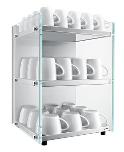 Zastosowanie trzech półek sprawia, że jednocześnie możemy pomieścić nawet 100 filiżanek do kawy (o średnicy 60 mm) lub 60 filiżanek do cappuccino( o średnicy 80 mm). Trzy nowoczesne, energooszczędne panele grzewcze pracują niezwykle cicho dzięki czemu możemy zainstalować ten podgrzewacz nawet w biurach.